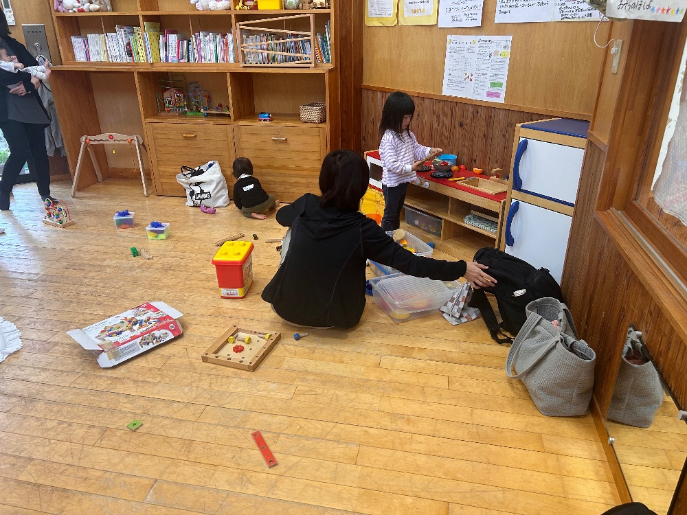 支援センターです気温の変化が激しい毎日ですね今日は曇り☁️で少し肌寒いそんな中半袖で園庭に飛び出ていくお友達子どもは元気だ👍