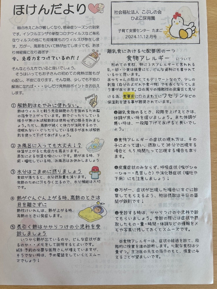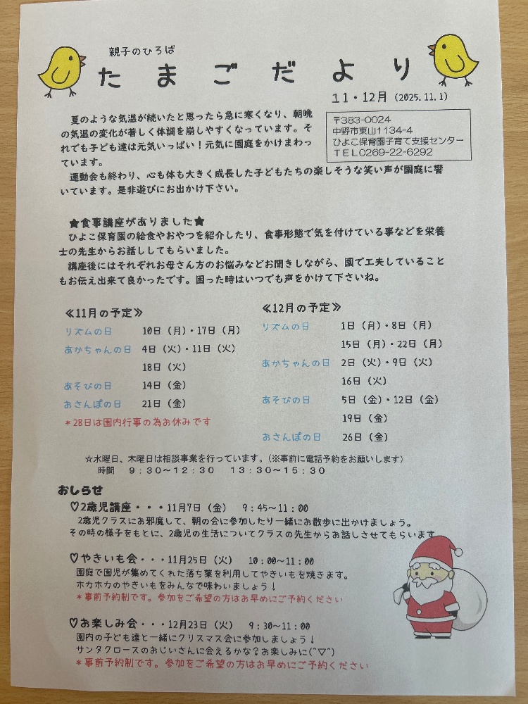 11.12月のお便りです焼き芋会🍠やお楽しみ会にお散歩楽しいことがいっぱいだね