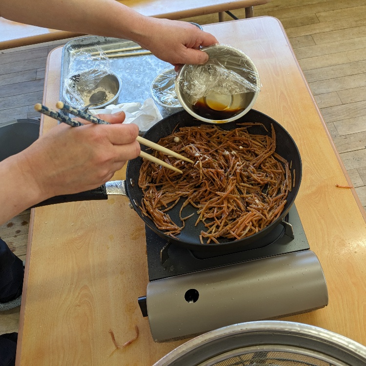少し湯がいて、苦味をとり担任が甘辛く味付け…